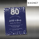 Um convite magnético moderno, na moda e glamouroso para uma festa de aniversário 80. Um fundo azul marinho, decorado com estrelas de falso prata. Personalize e adicione seu nome e detalhes da festa. O número 80 é gravado com uma fonte no estilo do balão.