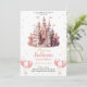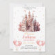 Crie uma comemoração mágica de aniversário com este convite à princesa personalizada! Apresentando um castelo sonhador e um elegante design cor-de-rosa, este convite é perfeito para uma festa de temas reais. Personalize com o nome, a idade e os detalhes do evento do seu filho para torná-lo especial.