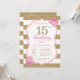 Convite de aniversário de 15 rosa e Dourado. Coloração rosa e Dourada. Listras brancas e rosa. Flor Floral Rosa. Aniversário de criança. Festa de aniversário. Para mais personalização, clique no botão "Personalizar" e use nossa ferramenta de design para modificar este modelo.