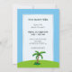 Ilustração de desenho animado de uma palmeira. Cor de fundo personalizada. Texto personalizado.