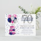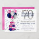 Este fabuloso convite de 70, que inclui um bolo cor-de-rosa e prateado com duas camadas com rosas azuis e balões cor-de-rosa, azul marinho e prata, o número 70 em prata e azul brilhante confetti seria perfeito para comemorar seu amado fazendo 70 anos. É tradicional e clássico enquanto é fresco, moderno e contemporâneo. As costas são uma folha cor-de-rosa coordenada.