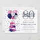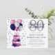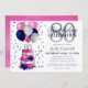 Este fabuloso convite de 80, que inclui um bolo cor-de-rosa e prateado com duas camadas com rosas azuis e balões cor-de-rosa, azul marinho e prata, o número 80 em prata e azul brilhante confetti seria perfeito para comemorar seu amado fazendo 80. É tradicional e clássico enquanto é fresco, moderno e contemporâneo. As costas são uma folha cor-de-rosa coordenada.