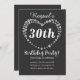 Celebre um evento elegante com este convite de aniversário! Possui lindas pérolas e tipo de script em um fundo de cinza escura.