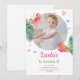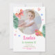 Celebre a sua primeiro aniversario com este na moda e vibrante convite com uma foto e borboletas adoráveis em tons de rosa e verde. Este design é perfeito para uma festa de primavera ou verão!