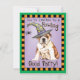 Convide todos os seus amigos para uma festa de boas-vindas neste Halloween com convites mostrando um cachorrinho bonito vestindo um chapéu de bruxa decorado com uma aranha fofinha. Tenha um feliz partido de HOWL-interpolação!