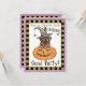 Convide todos os seus amigos para uma festa de boas-vindas neste Halloween com convites mostrando um cachorrinho bonito de chocolate Labrador Retriever, vestindo um chapéu de bruxa, num sorridente Jack-o-Lanterna. Tenha um feliz partido de HOWL-interpolação!