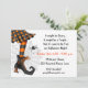 Um convite para o Dia das Bruxas com a perna, a aranha e a teia da bruxa laranja e preta. Adequado para crianças ou festas de Dia das Bruxas para adultos. Gráficos ©http://www.delightful-doodles.com/