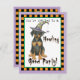 Convide todos os seus amigos para uma festa de boas-vindas neste Halloween com convites mostrando um cachorrinho bonito de Doberman Pinscher vestindo um chapéu de bruxa com uma aranha de bobo. Tenha um feliz partido de HOWL-interpolação!