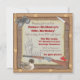 convite de festas Rustic Duck para caçar espingarda, faca de caça, binóculos, pato e um velho caçador desbotado e uma ilustração de cachorro em papel vintage colocado contra um fundo e uma estrutura de madeira. Perfeito para uma festa de aposentadoria, clube de armas, tema ocidental ou festa de aniversário. Ilustração desenhada à mão por McBooboo. Por favor, entre em contato comigo para ver as mudanças especiais!