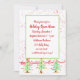 Um convite festivo à casa aberta, decorado com pequenas árvores de Natal enfeitadas com fitas vermelhas e ornamentos com faixas de fita vermelha e uma borda de areia com aquarela. Bom para reunir amigos e família no Natal!