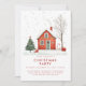 Convite à Casa Festiva de Festas Domésticas Abertas - Convide amigos e família para comemorar a temporada com este charmoso design de Natal, com uma acolhedora casa de cor d'água, maravilhosamente decorada para o Natal. Um pinheiro alto brilha ao lado da casa, enquanto um cobertor de neve recém-caída completa a encantadora cena de inverno. Perfeito para as suas reuniões de férias! Todo texto e cores são totalmente editáveis para se adequarem ao seu estilo pessoal.