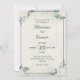 Este convite moderno de casamento verde minimalista apresenta um layout elegante com elementos botânicos sutis e fontes refinadas — ideal para casamentos contemporâneos, elegantes ou de temas naturais. Totalmente personalizável para a sua celebração única.