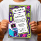 Alinhe a diversão com este vibrante design de aniversário da retro arcade de 1rua, com uma máquina de fliperama clássica e um pano de fundo púrpura cósmico com sotaques verdes e cor-de-rosa neonatos. Perfeito para a celebração do marco infantil, esta peça personalizável traz uma vibração nostálgica e enérgica ao partido. Com o seu estilo retrô lúdico, é ideal para uma reunião memorável. Inclui espaço para os detalhes do evento e informações de RSVP. Personalize-o para criar um guardião valioso para o seu jogador e hóspedes!