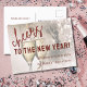Óculos de champanhe, um relógio prestes a atingir a meia-noite com faíscas de ouro, e a palavra aplausos em escrita vermelha de brilho fazem o pano de fundo perfeito para este convite de festas festivo de Ano Novo. Convide seus amigos para tocar no ano novo com você e celebrar no estilo.