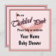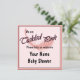 Uma ilustração gráfica de uma pena em um convite para Chá de fraldas rosa-tique. O convite tem modelos de texto para sua personalização. ©2013charmanepaulson
