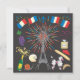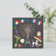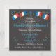 Celebre o Dia da Bastilha com este divertido convite! Torre Eiffel, Champagne, queijo de brie, poodle francês, baguetes, perfume francês, torre, escargot, bandeiras francesas e fogos de artifício contra um céu noturno negro. Ilustração desenhada à mão por McBooboo.