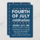 Convide convidados para comemorar o dia 4 de julho com você e seus amigos e família com esses convites de festas alegres e patrióticos! Este design apresenta um design de estrelas vermelho, branco e azul na frente e atrás. Veja mais convites de festas de verão e quarto de julho na loja Young Wanderlust!