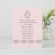 Um convite elegante para a celebração religiosa de uma menina apresentando um pergaminho vintage com uma cruz coordenada em um fundo cor-de-rosa suave. O painel traseiro é perfeito para receber informações.O cartão é fácil de personalizar com seu texto, fonte, cor da fonte e escolha de seis tipos de papel.