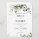Convite à Cerimônia de Casamento Verde. Este na moda e elegante Convite para Chá de Casamento apresenta uma linda coloração d'água pintada manualmente Greenery. Localize itens correspondentes na Aquarela Eucalyptus Floral Greenery_HB1.