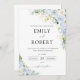 Celebre seu grande dia em estilo com este convite à cerimônia de casamento azul empoeirado, com florais de aquarela macia e roteiro elegante. Personalize facilmente com seus nomes, data e detalhes da cerimônia - uma combinação perfeita de romance e sofisticação.