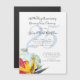 Convite magnético moderno e moderno a uma cerimônia de renovação de votos com tema tropical. Convites planos vêm em três tamanhos e são decorados com plumeria, hibisco e flores de pássaro-do-paraíso. Um grande número (durante anos casados) pode ser adicionado a azul claro ao fundo ou apagado o número da amostra.