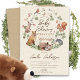 Apresentando nosso charmoso convite para chás de fraldas, adorado com uma encantadora cena florestal. Essa design encantadora captura a essência da natureza, apresentando adoráveis criaturas florestais em meio a uma exuberante verde. Perfeito para celebrar a chegada de um pequeno, nosso convite dá o tom para um chá de fraldas caprichoso e memorável. Com seu imaginário cativante e uma tipografia elegante, esse convite certamente impressionará seus convidados e criará um senso de antecipação para a ocasião alegre.