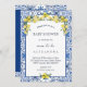 Personalize este Chá de fraldas Chic Lemon e comemore a mãe a estar no estilo italiano! Este na moda apresenta limões de aquarela amarelas vibrantes e folhas verdes escorridas, colocadas sobre um fundo branco nítido. As bordas do convite são adornadas com azulejos italianos de padrão azul e branco, acrescentando um toque de elegância mediterrânica. O design é sofisticado e refrescante, fazer ideal para uma animada festa ou piquenique da futura mãe. O motivo da fruta dos citros encarna a atmosfera viva e alegre da celebração, criando um cenário bonito e memorável.