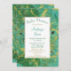 Um convite feito à mão, estilo papel verde, lacre e chá de fraldas de ouro. Sexo neutro para o menino ou para a menina