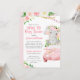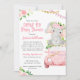 Anuncie o seu carro de chá de fraldas com este belo convite com flores cor-de-rosa, balões e um elefante de menina num carro cor-de-rosa. É fácil personalizar o texto.