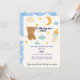 Celebre a alegria de uma nova chegada com este adorável cartão de convite para bebês, com um ursinho fofo, lua, estrelas, nuvens e uma garrafa de bebê. Perfeito para chás de fraldas, comemorações de recém-nascidos ou festas acolhedoras. Totalmente personalizável com o nome, data e detalhes do evento do seu bebê para torná-lo realmente pessoal.