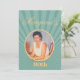 Um convite de aniversário com uma fotografia pessoal sobre um fundo de raios solares. Mude a idade para qualquer idade, não apenas 90. Altere as imagens com suas próprias fotos, a imagem no verso aparecerá esmaecida. Altere facilmente todas as suas informações para o seu próprio convite de aniversário pessoal personalizado.
