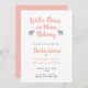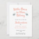 Um belo convite tipográfico para a dedicação de sua garotinha com uma frase do popular hino Jesus me ama. A frase "Os pequenos a ele pertencem" é escrita em letra de ancoragem de coral, flanqueada por dois elefantes de cinza.