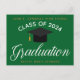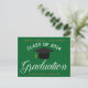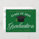 Este cartão postal de graduação minimalista e elegante é perfeito para um anúncio de formando ou convite de cerimônia. Personalize este simples cartão-postal verde com tipografia dourada para um segundo grau, universidade ou universidade da classe 2023 Personalize com o seu nome sob a adorável caligrafia.