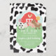 Convite de aniversário de fazenda de fazenda branca com impressão de vaca
