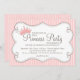 Como um conto de fadas, este convite bonito apresenta elementos reais adoráveis ajustado para a sua pequena princesa. Um belo banner branco encaracolado com uma coroa rosa e todos os detalhes da festa, e é colocado sobre um fundo de duas faixas cor-de-rosa. Todos os seus convidados saberão que uma doce celebração princesa está guardada nesta festa. Procure nossos adesivos correspondentes (para favores ou cupcakes), botões personalizados da Princesa, postagem, cartazes de jardim, cartões de cartazes DIY e cartões de agradecimento também.
