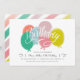 Este convite de aniversário moderno e brilhante apresenta a inscrição manual sobre balões coloridos com um efeito texturizado. Vem com um padrão de stripe correspondente no verso. Personalize com seus detalhes de evento usando os campos modelo de texto fornecidos.