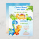 Convite de aniversário de dinossauros coloridos e orçamento; atraente para as crianças, cores brilhantes, bom para festas de aniversário de idade infantil.
