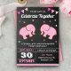 Encontrem seus hóspedes com esta festa de aniversário gêmea convidando com adoráveis elefantes com elementos vibrantes contra um fundo de quadro. Basta adicionar os detalhes do seu evento neste modelo fácil de usar para torná-lo um convite de tipo único. Sacudir a placa para revelar um padrão elegante de listras cor-de-rosa e brancas na parte traseira da placa.