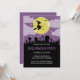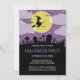 Nossa Bruxa por causa de uma festa de Halloween do Cemitério... é perfeito para a próxima festa de Halloween! Este convite personalizável apresenta uma silhueta de bruxa assustadora voando no céu noturno sobre um cemitério assustador e sobrecarregado com uma lua brilhante de cheio atrás dela.