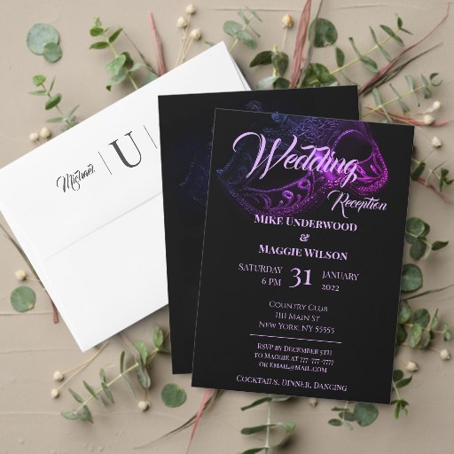 Máscara de pena linda preta, cinza e convite de festas prateada. Este convite de festas elegante é perfeito para Anos novos, Casamentos no inverno e é facilmente personalizado para o seu evento, simplesmente escolhendo o botão "Personalizar!" para começar a adicionar os detalhes do evento.