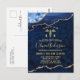 Cartão-postal de convite à Festa de formatura Azul RN Dourado moderno. Medicina