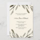 Convite à festa de formatura de na moda com design de folha rústica bonito e decorativa com padrão na parte de trás da carta.