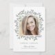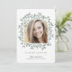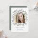 Uma design simples e adorável que mostra sua foto de formando na frente em uma bela folha de eucalipto em tons verdes neutros de cor. Todos os detalhes da parte ou do anúncio estão no verso. Um estilo natural maravilhoso com uma sensação feminina em formato vertical destaca sua foto de formando na frente.