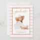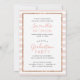 Barato com anúncios de fotos de graduação impressos e convites de festas com modelos simples para personalização. Esta design feminina chic apresenta uma falso borda de folha de rosa-ouro e um fundo de faixa de cor-de-água rosa e cor-de-rosa. Personalize-o com sua foto e adicione seu anúncio de graduação e detalhes da festa no verso. Use as ferramentas de design para alterar as fontes de texto e as cores, adicionar mais fotos e criar uma única design de tipo para o seu formando!