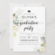 Convite à Festa de formatura de Rosas Brancas. Este Convite para graduação na moda e elegante apresenta um belo Eucalipto pintado à mão. Localizar itens correspondentes na Coleção de Festas de formatura.