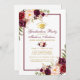 Watercolor Burgundy Marsala e Cartão de Convite à Festa de formatura Floral Dourado