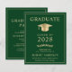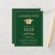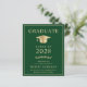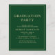 Anúncio e convite de festas elegantes e respeitadores do orçamento do formandos verde com boné de ouro e tipografia moderna de ouro leve para o nome do formando, ano de aula, faculdade ou universidade, grau e grande ou honras.