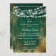 Um convite de festa de formatura verde esmeralda da anca, com um fundo metálico falsa angustiado com luzes suspensas. Esse convite para a classe de graduação é perfeito para a celebração de segundos graus, universidades, faculdades ou qualquer tipo de formando escolar.