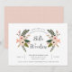 O convite à festa de formatura floral Chic contém o nome do formando em um roteiro elegante de caligrafia, enquadrado por pêssego e flores cor-de-rosa escamoteadas, botões e verde. Personalize com seus detalhes de festa de formatura abaixo.