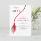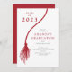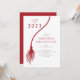 Convite de festa de formatura da Classe Minimalista de 2022, com um tassel vermelho sobre fundo branco. Visite o nosso compro para ver este design em várias cores escolares.